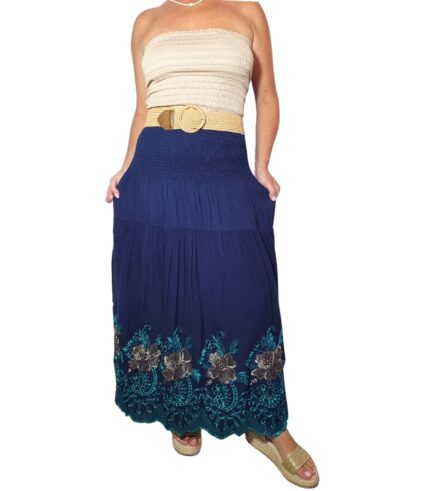 Falda bordada con elástico en la cintura
