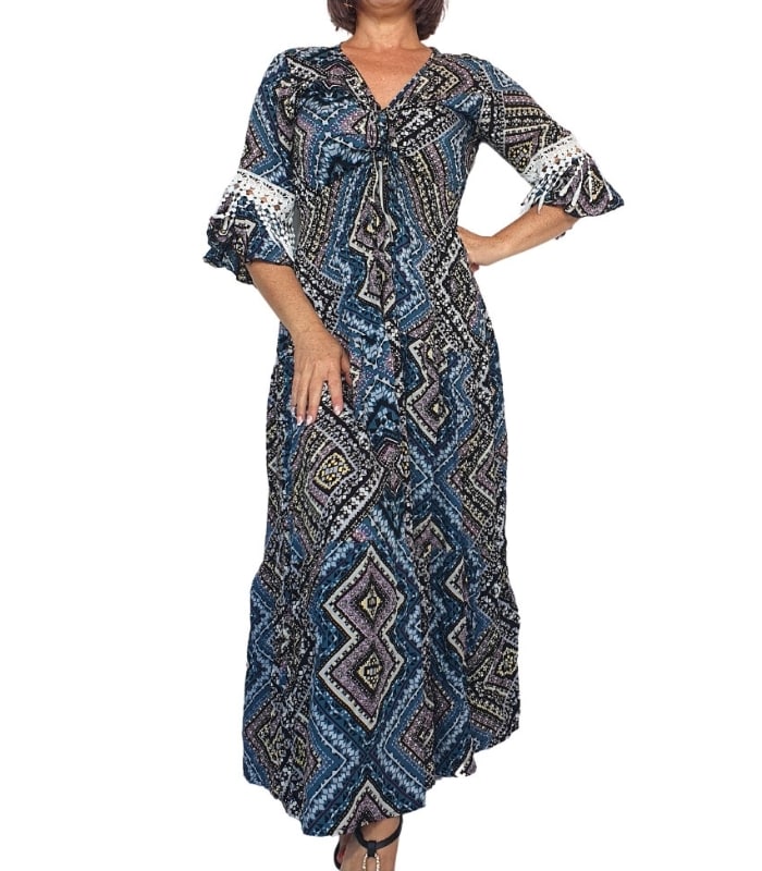 Blusa tipo caftán corto con flecos. Esta blusa de rayón de flecos es perfecta para el verano gracias a su material de viscosa. Con estampados multicolores variados, es una prenda que añadirá diversión y estilo a cualquier guardarropa. Además, su diseño de flecos le da un toque bohemio y fresco.